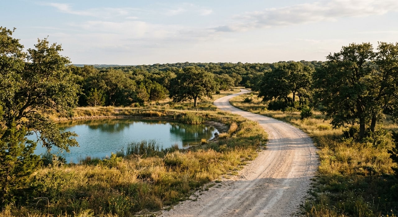 Direct access off the blacktop road of FM 86, featuring mature trees and a picturesque pond, a perfect convenience for a smaller tract.
